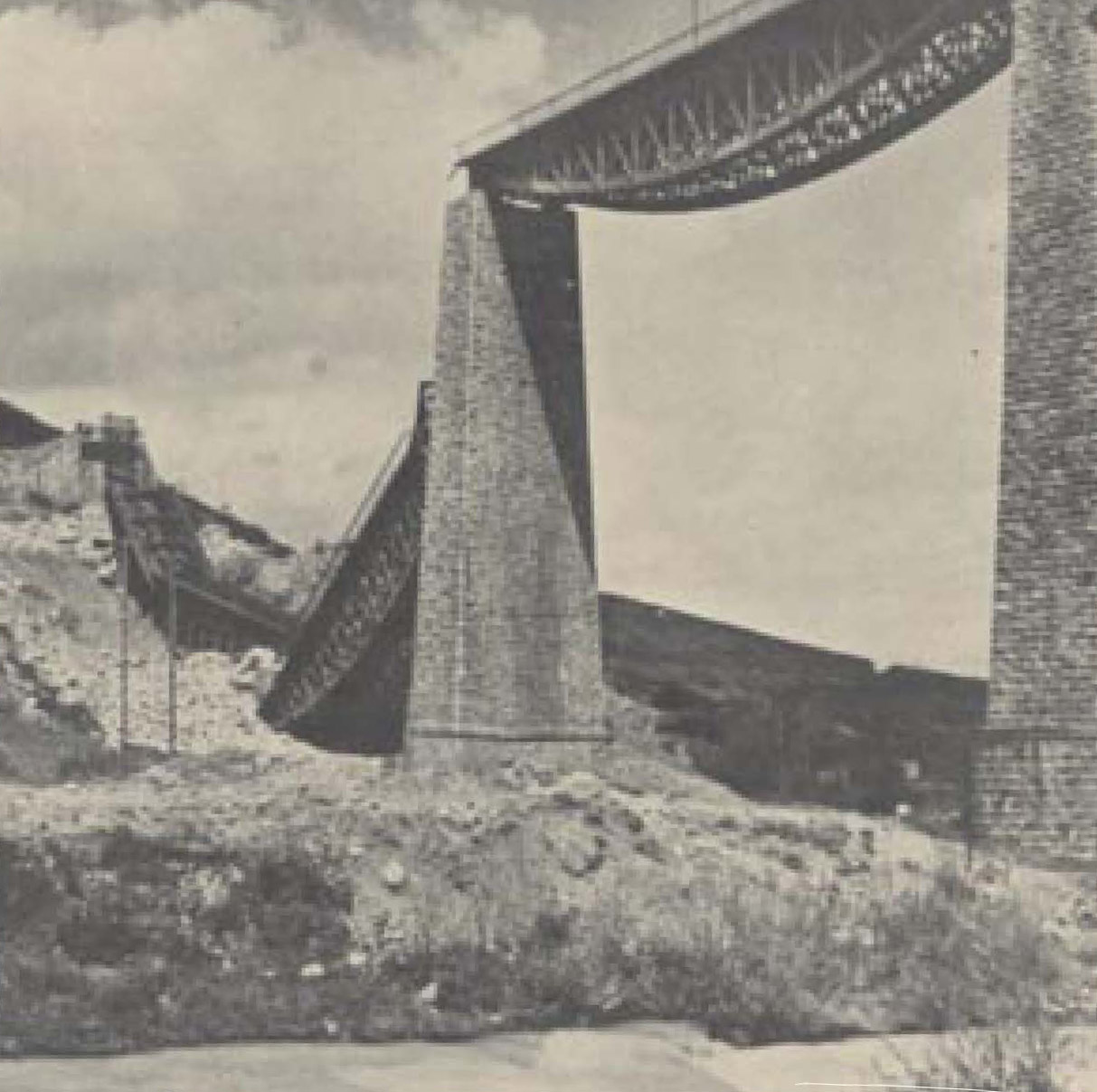 Η γέφυρα του Γοργοπόταµου µετά την ανατίναξή της, στις 25 Νοεµβρίου 1942. Θεωρείται η κορυφαία πράξη της Εθνικής Αντίστασης